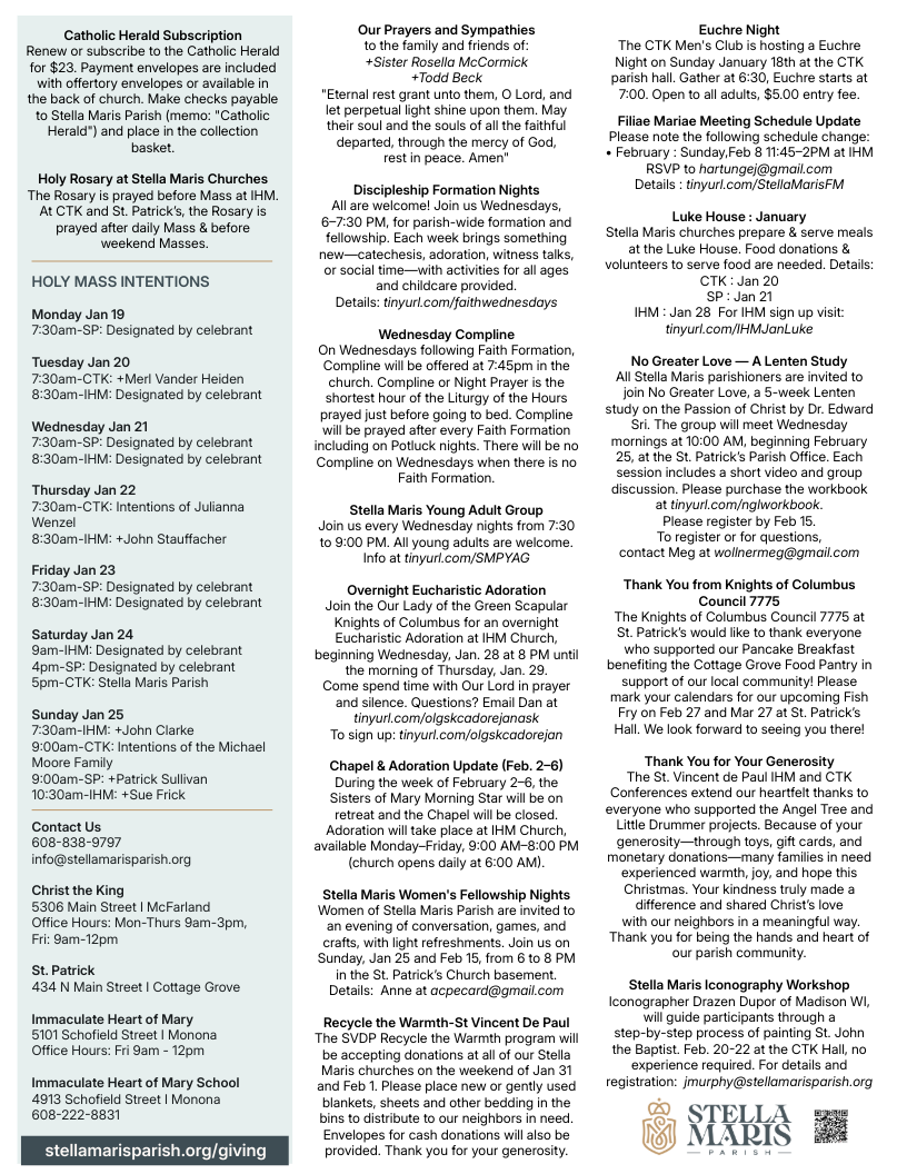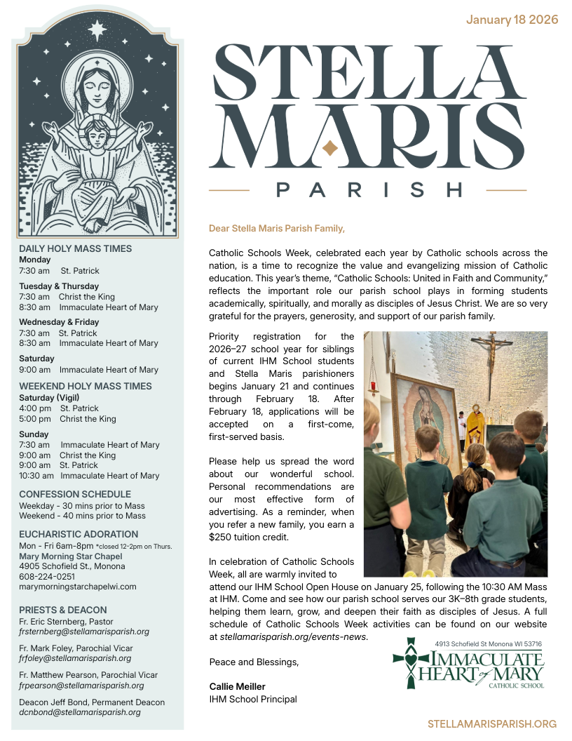 Sent by Parish Communications on Saturday, January 17 at 2:01PM