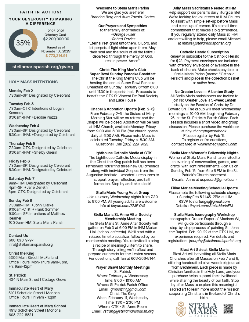 Sent by Parish Communications on Saturday, January 31 at 2:00PM
