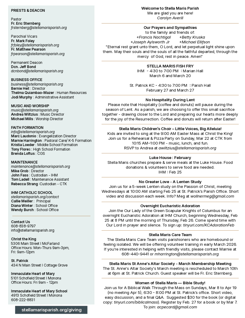Sent by Parish Communications on Saturday, February 21 at 2:01PM