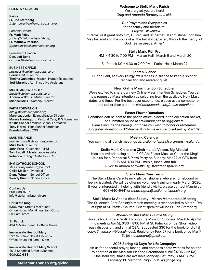 Sent by Parish Communications on Saturday, February 28 at 2:01PM