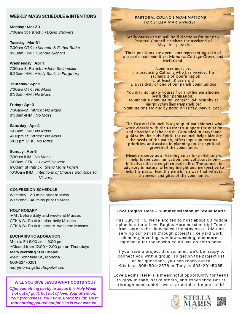 Adoration at IHM Church - Mar 30-31 & Apr 6-7